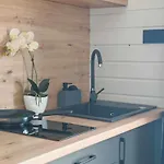 Domki Relaxo Rewal villa biedt een kitchenette met alle benodigde apparatuur, zoals een waterkoker, een koelkast en een kookplaat.