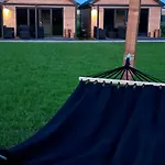 De hut beschikt over een badkamer met een apart toilet en een douche. Een haardroger en handdoeken zijn inbegrepen om uw comfort te verhogen.