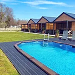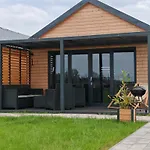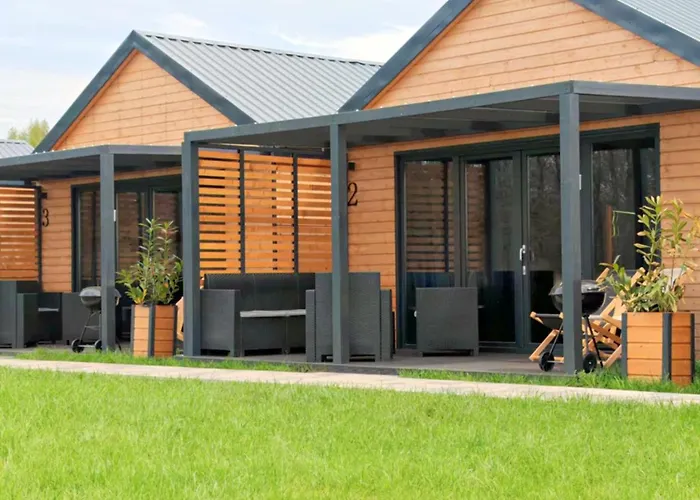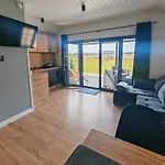 Domki Relaxo Rewal villa ligt ongeveer 1 km verwijderd van het Oceanarium en nodigt gasten uit om te ontspannen op een terras.
